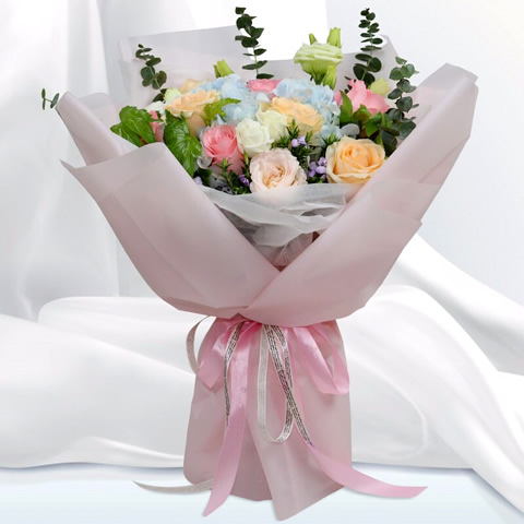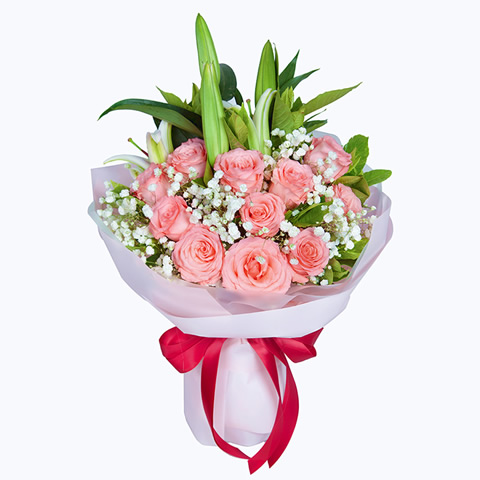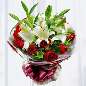 16枝玫瑰搭配桔梗